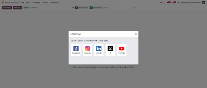 La première étape consiste à lier vos comptes sociaux à Odoo.