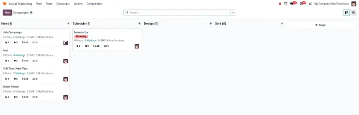 Odoo propose une réponse efficace : un centre de contrôle unique pour piloter l’ensemble de vos communications sociales.